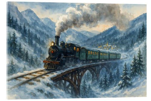 Posterlounge   Wandbilder   Blau   Natalie Bruns   Acrylglasbild Dampfzug in den verschneiten Alpen