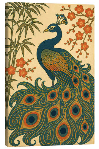 Posterlounge   Wandbilder   Tiere   Vögel   Pfauen   Natalie Bruns   Leinwandbild Japanischer Pfau mit Bambus und Blüten