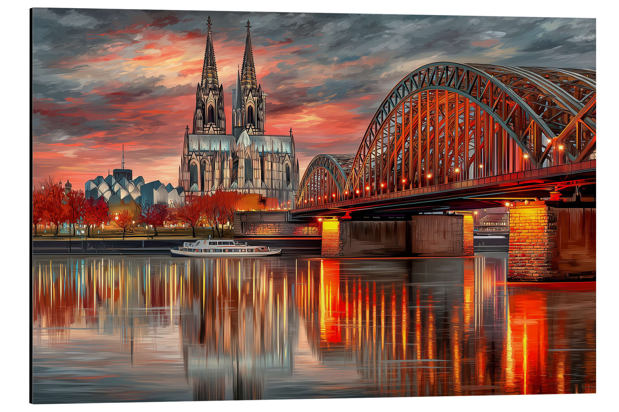 Alubild Köln - Hohenzollernbrücke im Abendlicht
