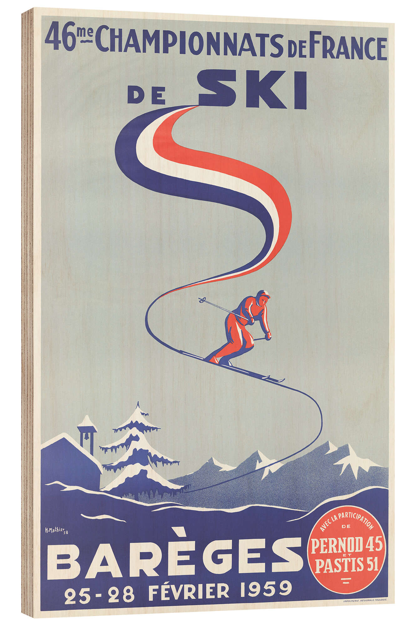 Posterlounge   Wandbilder   Vintage   Vintage Ski Collection   Holzbild 46. Französische Skimeisterschaften (Französisch)