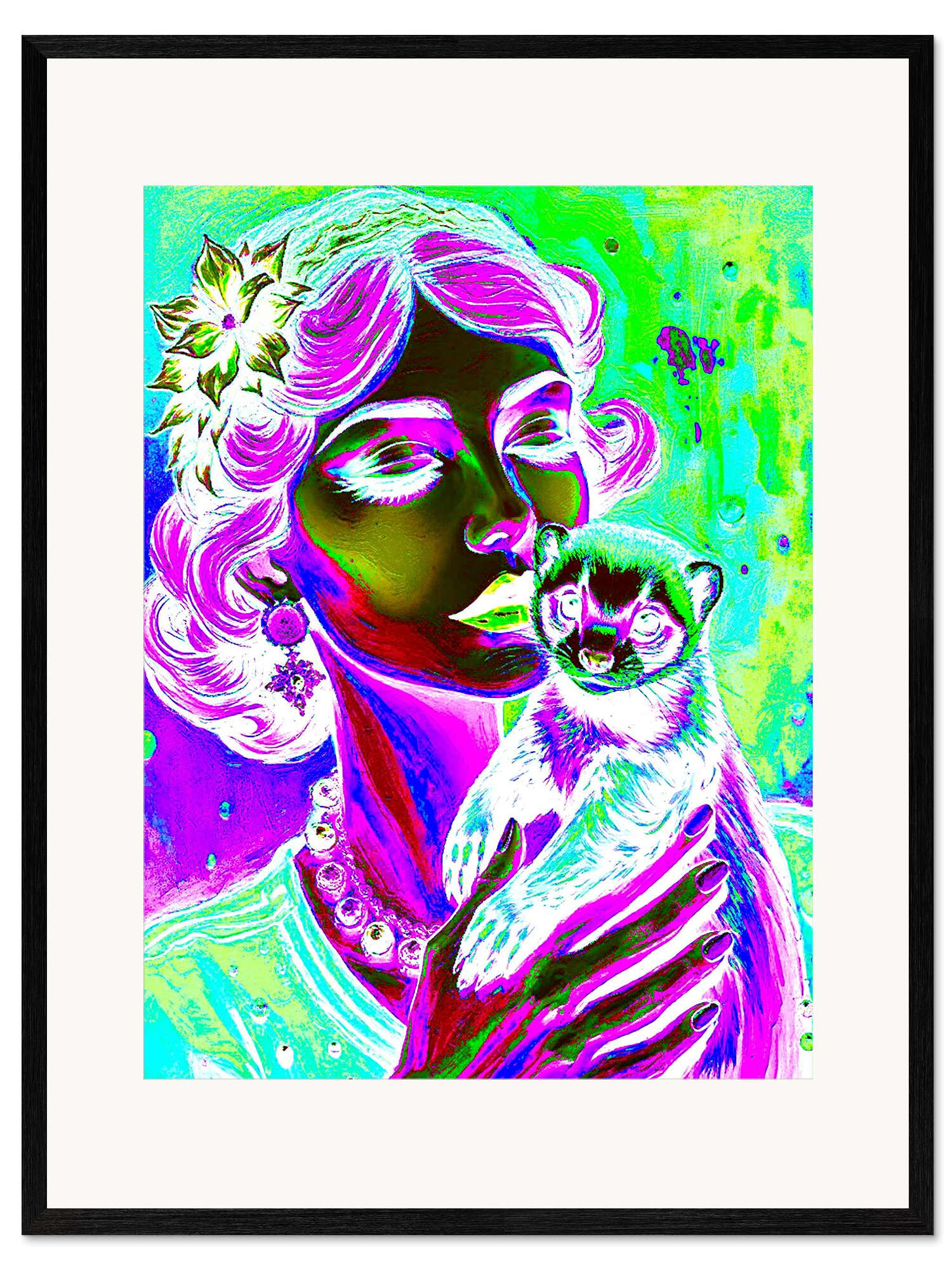 Gerahmter Kunstdruck Dame mit Frettchen