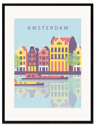 Gerahmter Kunstdruck Amsterdamer Stadtbild-Illustration