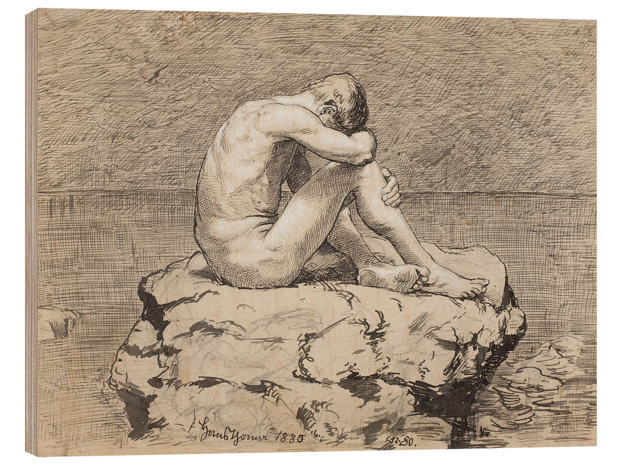 Posterlounge   Wandbilder   Illustration   Zeichnung & Skizze   Hans Thoma   Holzbild Einsamkeit, Männlicher Akt