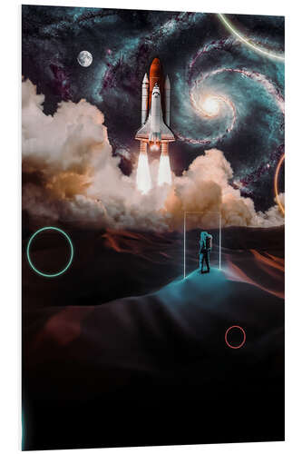 Posterlounge   Wandbilder   Weltraum   Gen Z   Hartschaumbild Astronaut allein in der Wüste beim Raketenstart