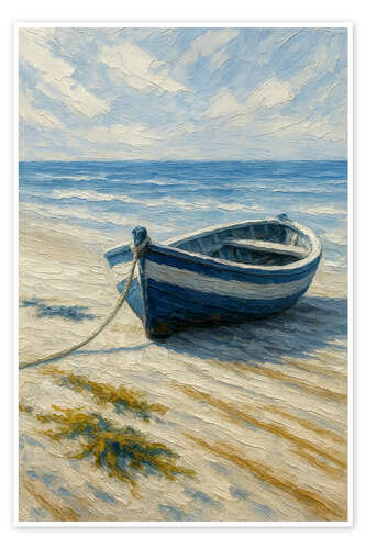 Posterlounge   Wandbilder   Fahrzeuge   Boote   Natalie Bruns   Poster Blaues Fischerboot am Sandstrand