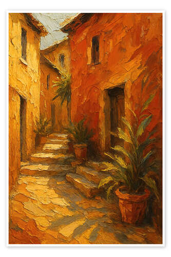 Posterlounge   Wandbilder   Orange   Natalie Bruns   Poster Sonnige mediterrane Straße mit Steinhäusern