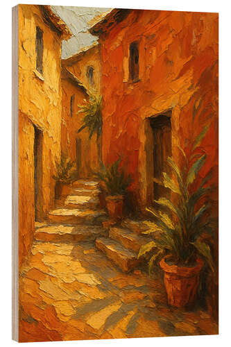 Posterlounge   Wandbilder   Orange   Natalie Bruns   Holzbild Sonnige mediterrane Straße mit Steinhäusern