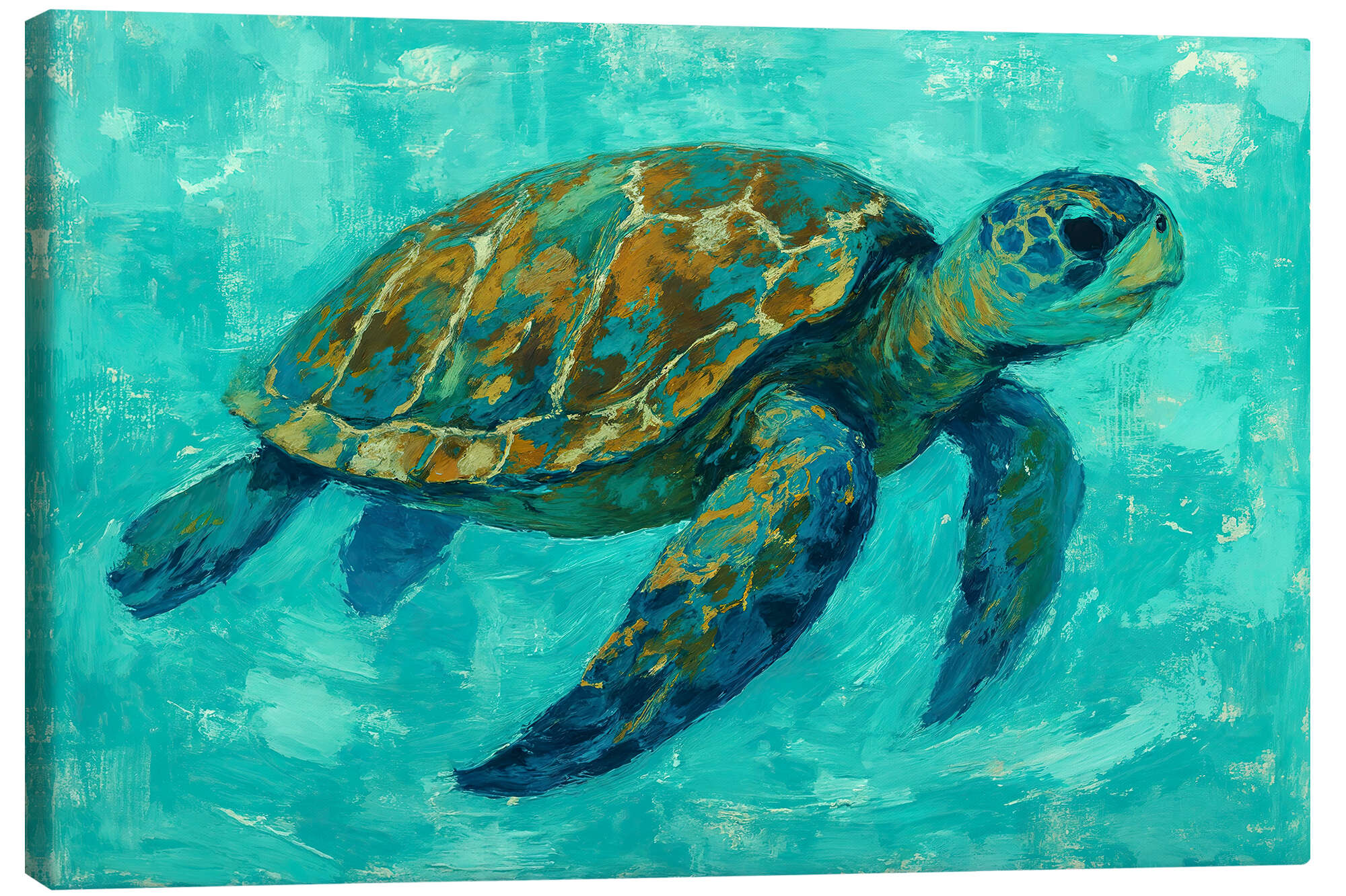 Leinwandbild Meeresschildkröte schwimmt im türkisfarbenen Wasser