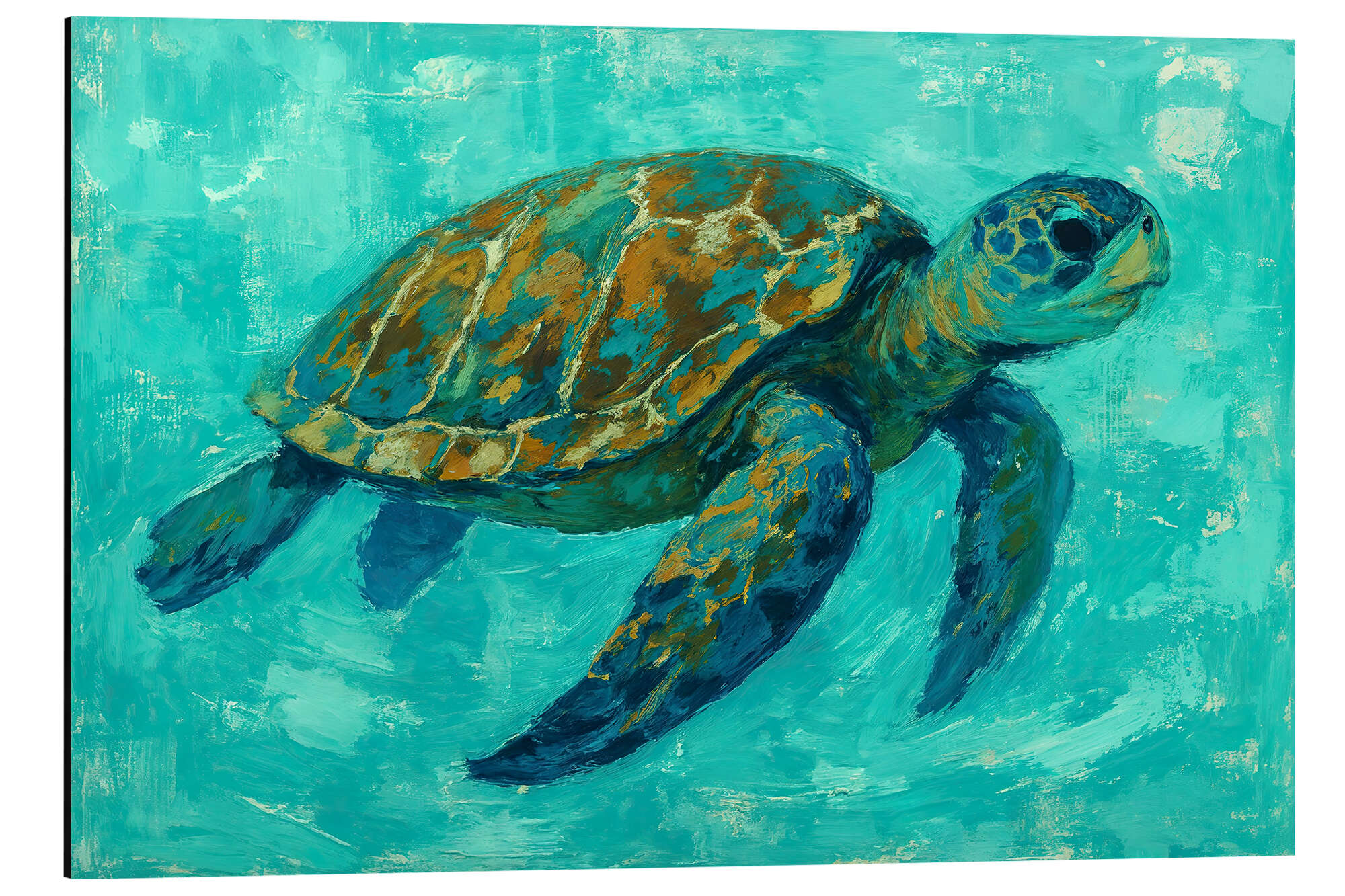 Alubild Meeresschildkröte schwimmt im türkisfarbenen Wasser