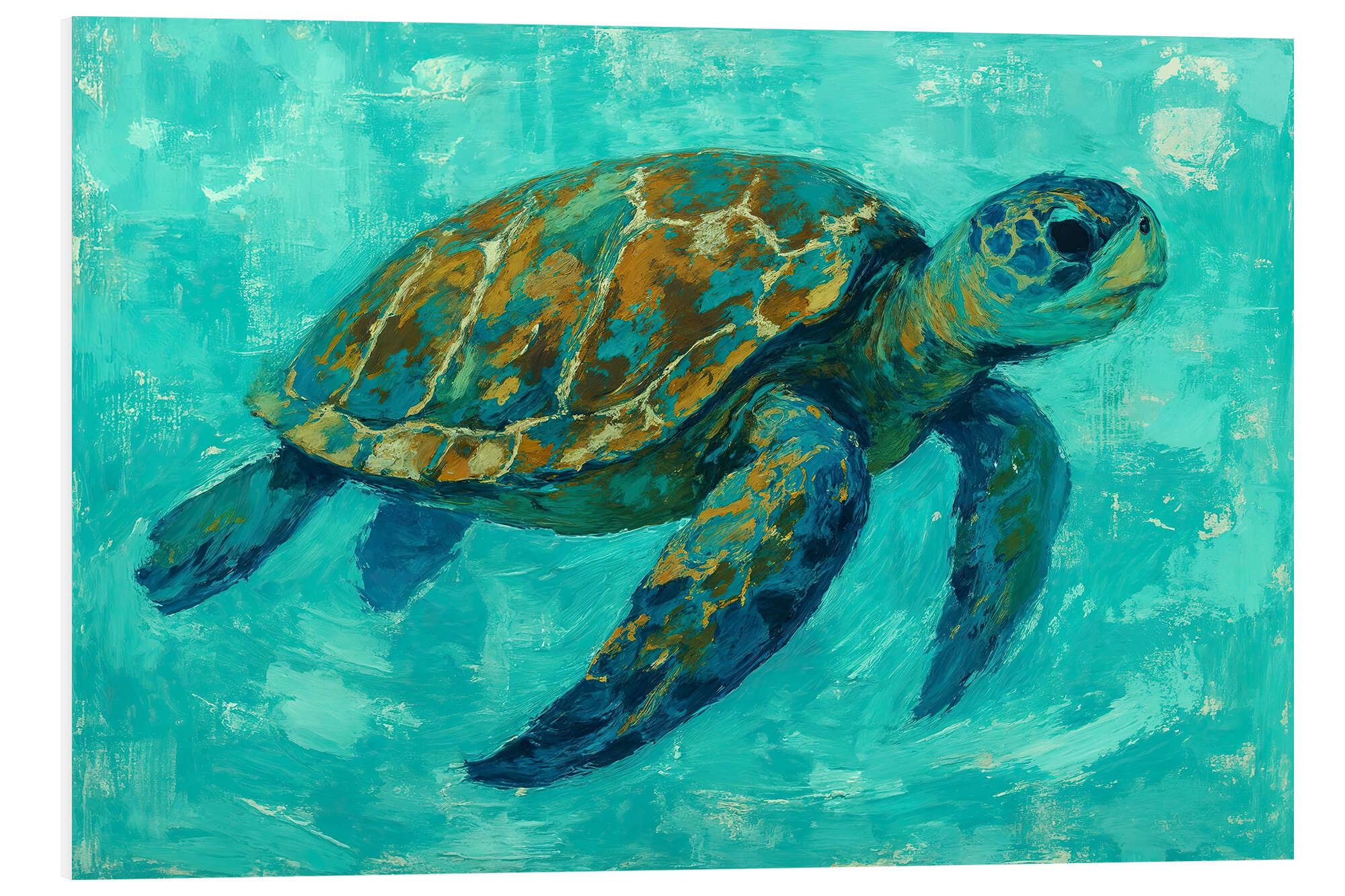 Posterlounge   Wandbilder   Kinderzimmer   Natalie Bruns   Hartschaumbild Meeresschildkröte schwimmt im türkisfarbenen Wasser