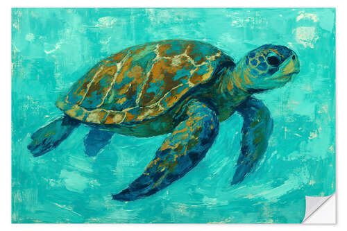 Wandsticker Meeresschildkröte schwimmt im türkisfarbenen Wasser