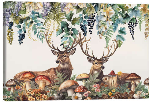 Leinwandbild Hirschfreunde im Wald