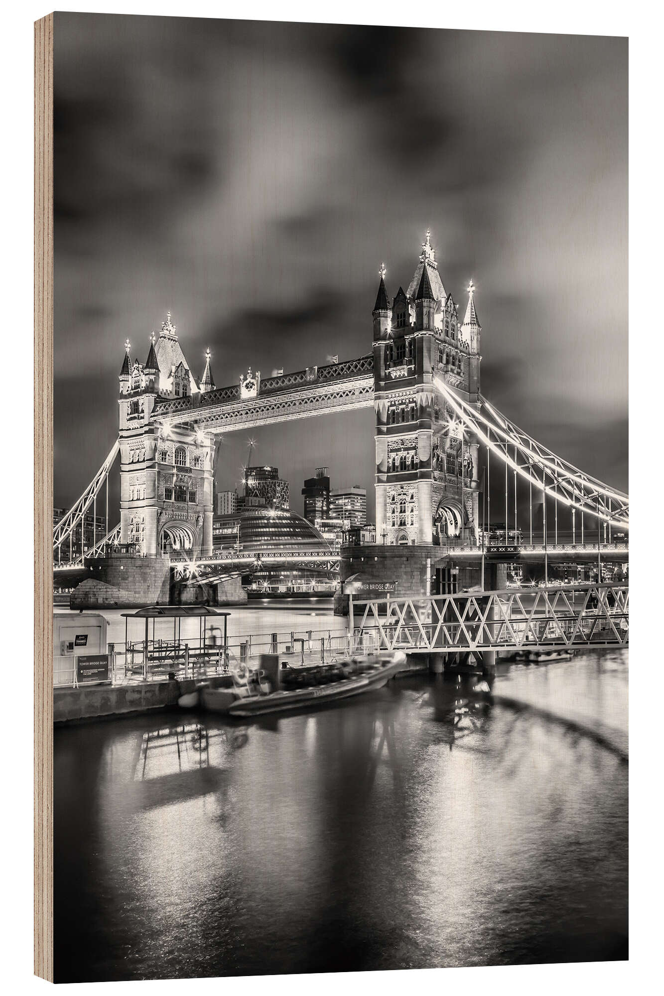 Holzbild Tower Bridge London - Magie am Abend