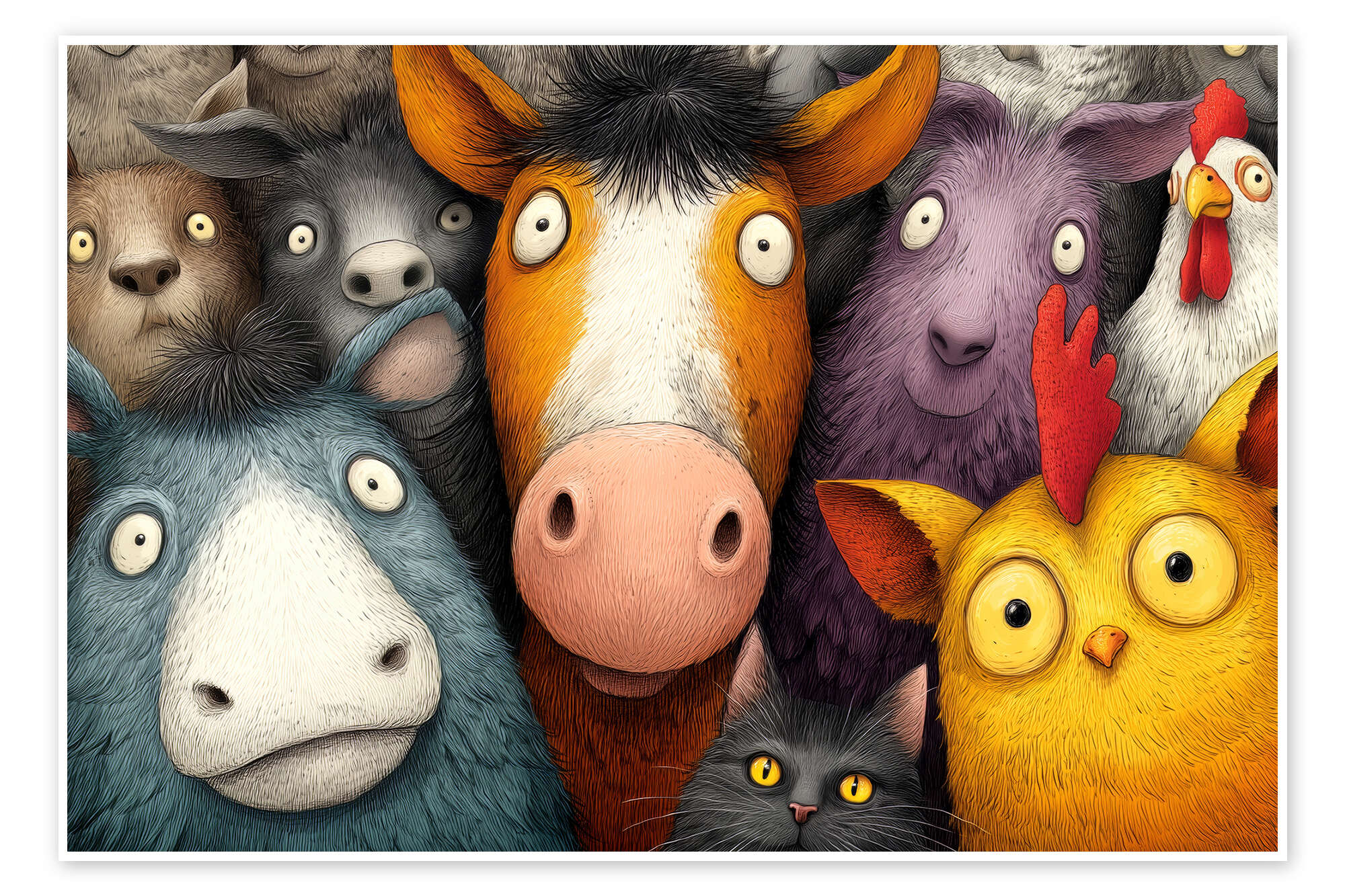 Posterlounge   Wandbilder   Kinderzimmer   Thomas Klee   Poster Tierische Nachbarn - Bunte Hofgemeinschaft