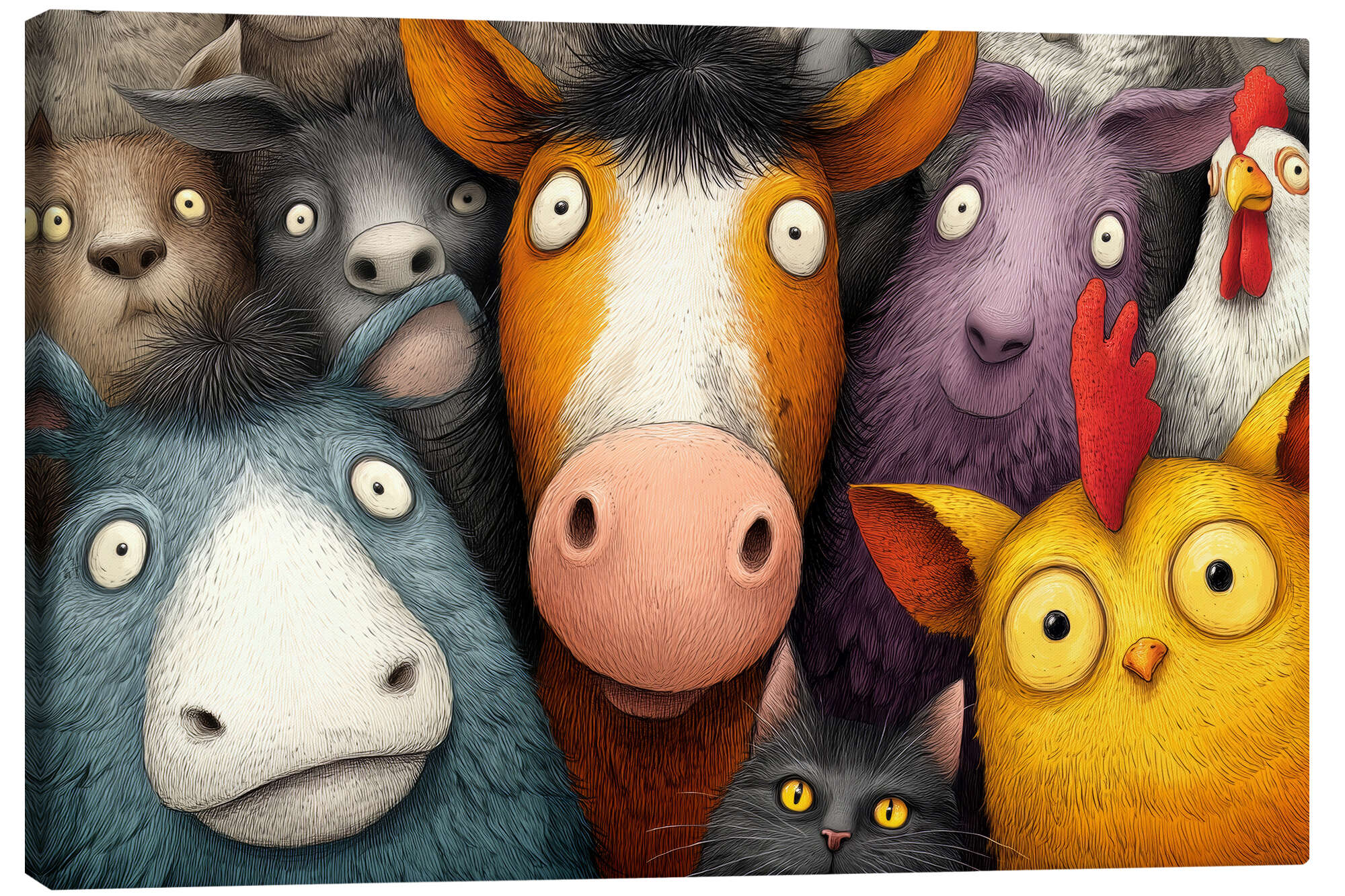 Leinwandbild Tierische Nachbarn - Bunte Hofgemeinschaft