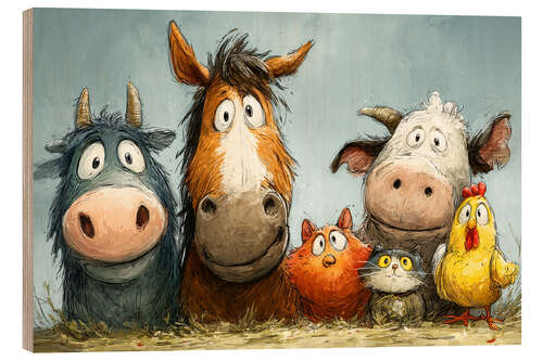 Holzbild Bauernhoftiere schauen verdutzt