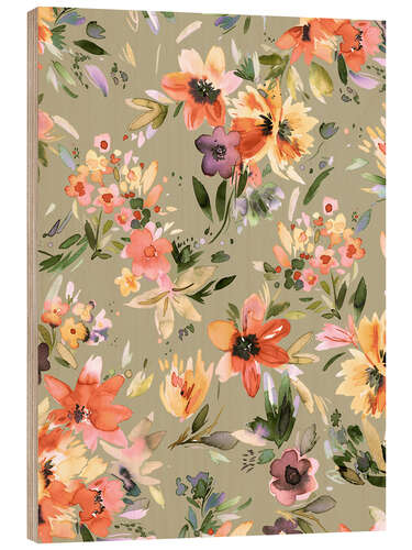 Posterlounge   Wandbilder   Grafikdesign   Floral   Ninola Design   Holzbild Herbstblumen in Salbeigrün