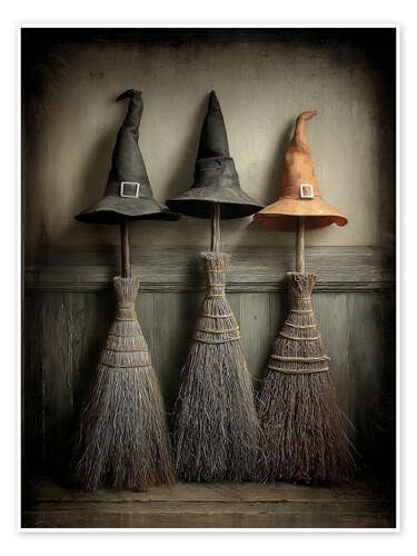 Poster Halloween Hexenhüte und Besen