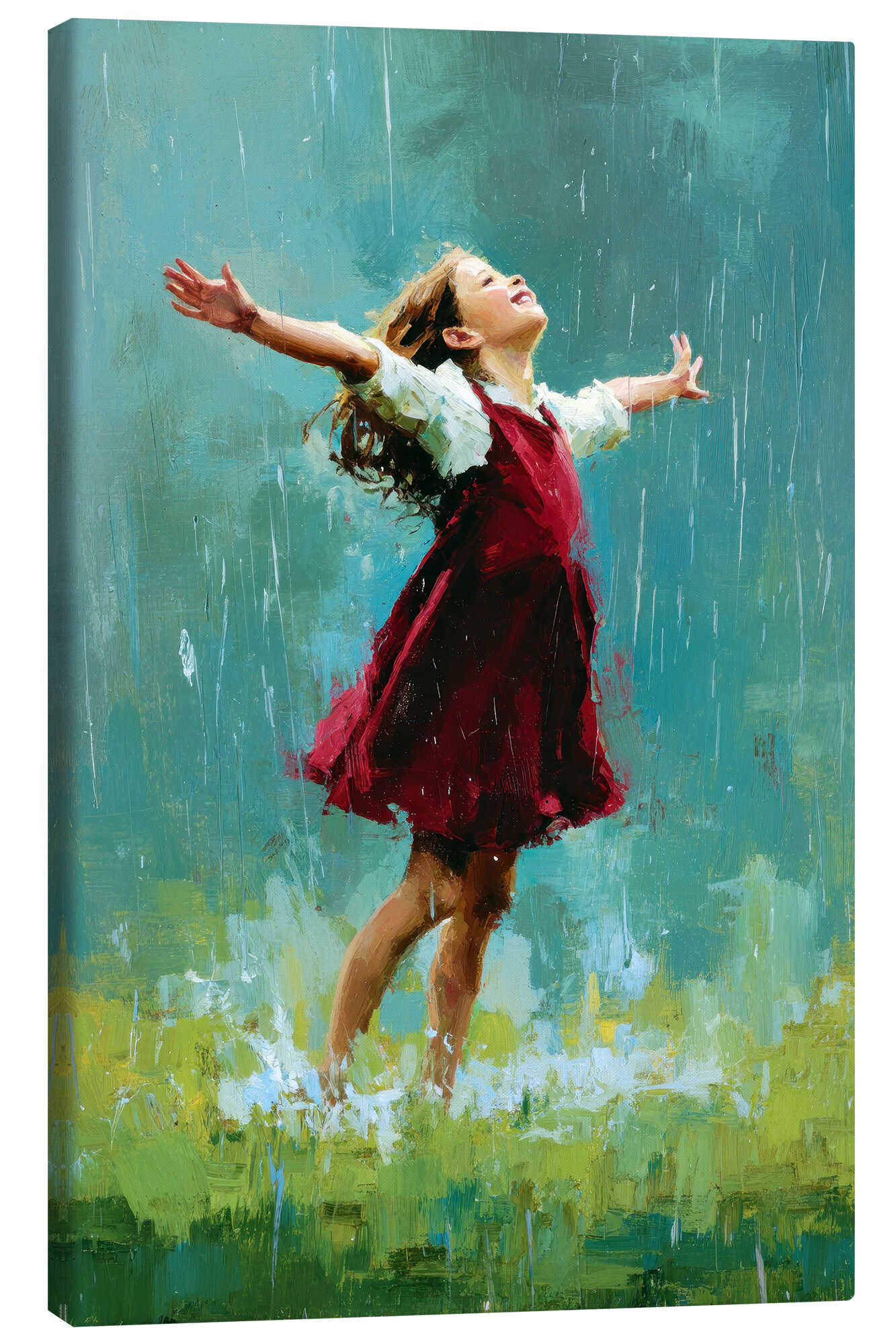 Posterlounge   Wandbilder   Grün   pixelliebe   Leinwandbild Glückliches Mädchen im Regen