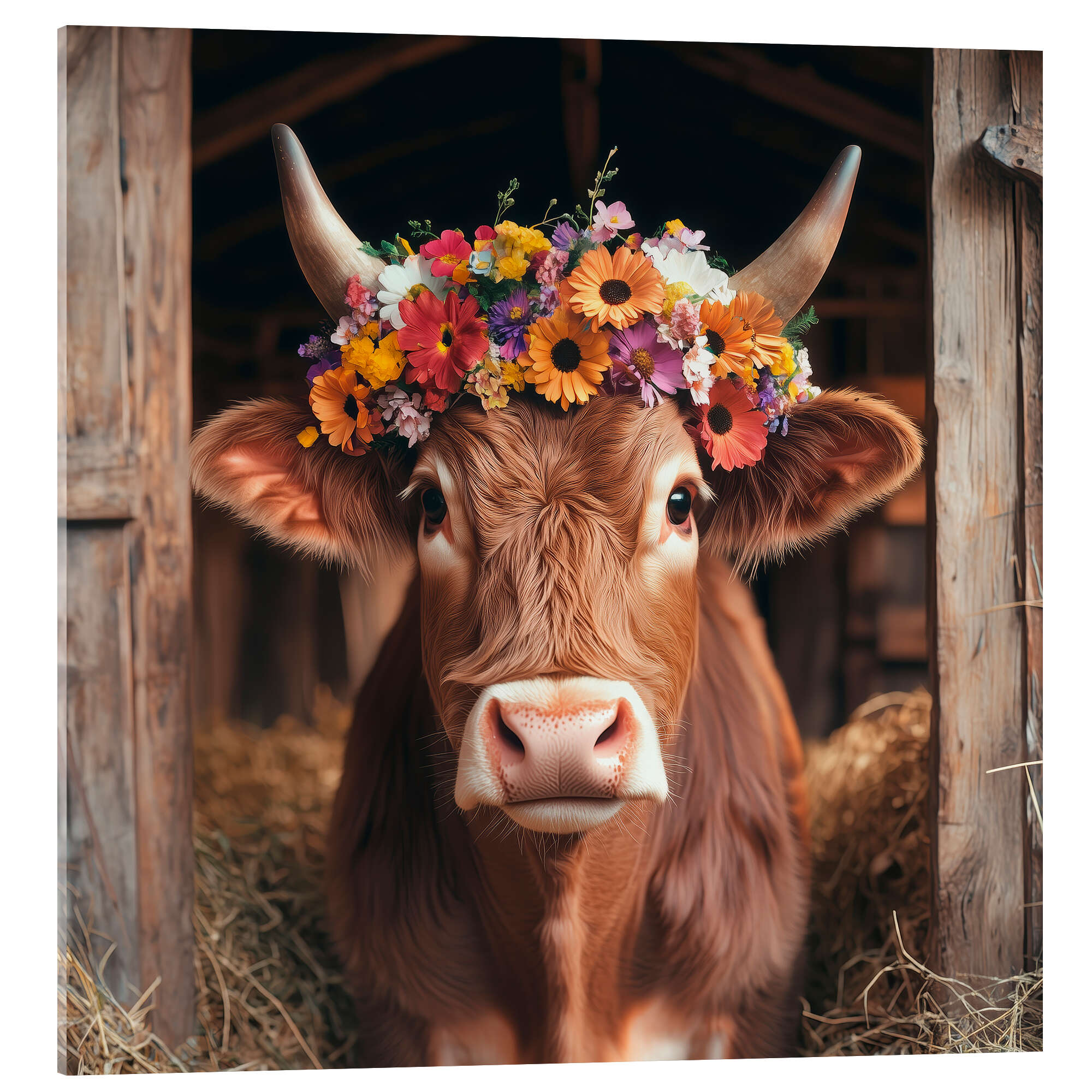 Posterlounge   Wandbilder   Fotografie   Fotocollage   Thomas Klee   Acrylglasbild Blumengeschmückte Kuh
