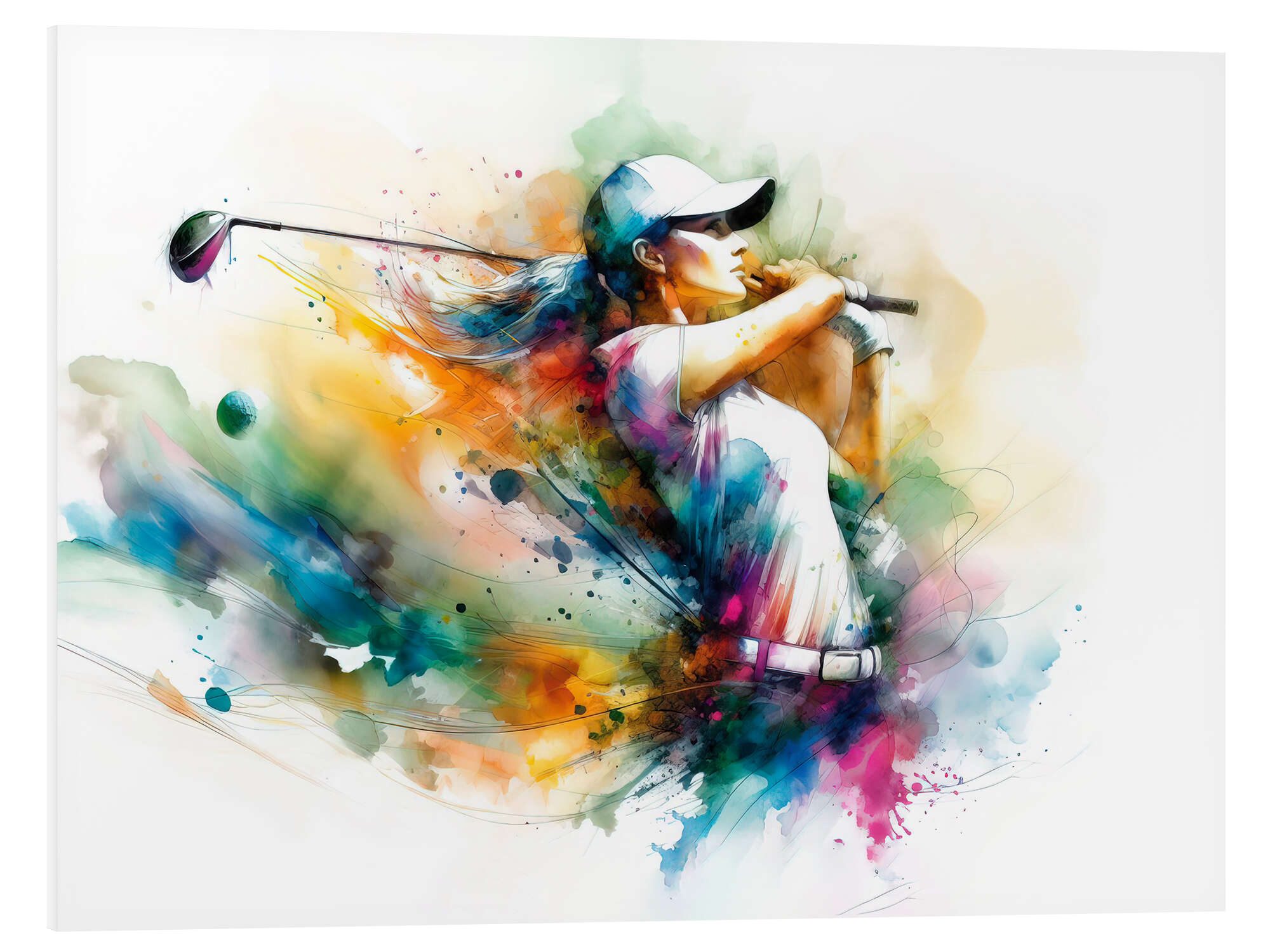 Hartschaumbild Golfspielerin im Aquarell