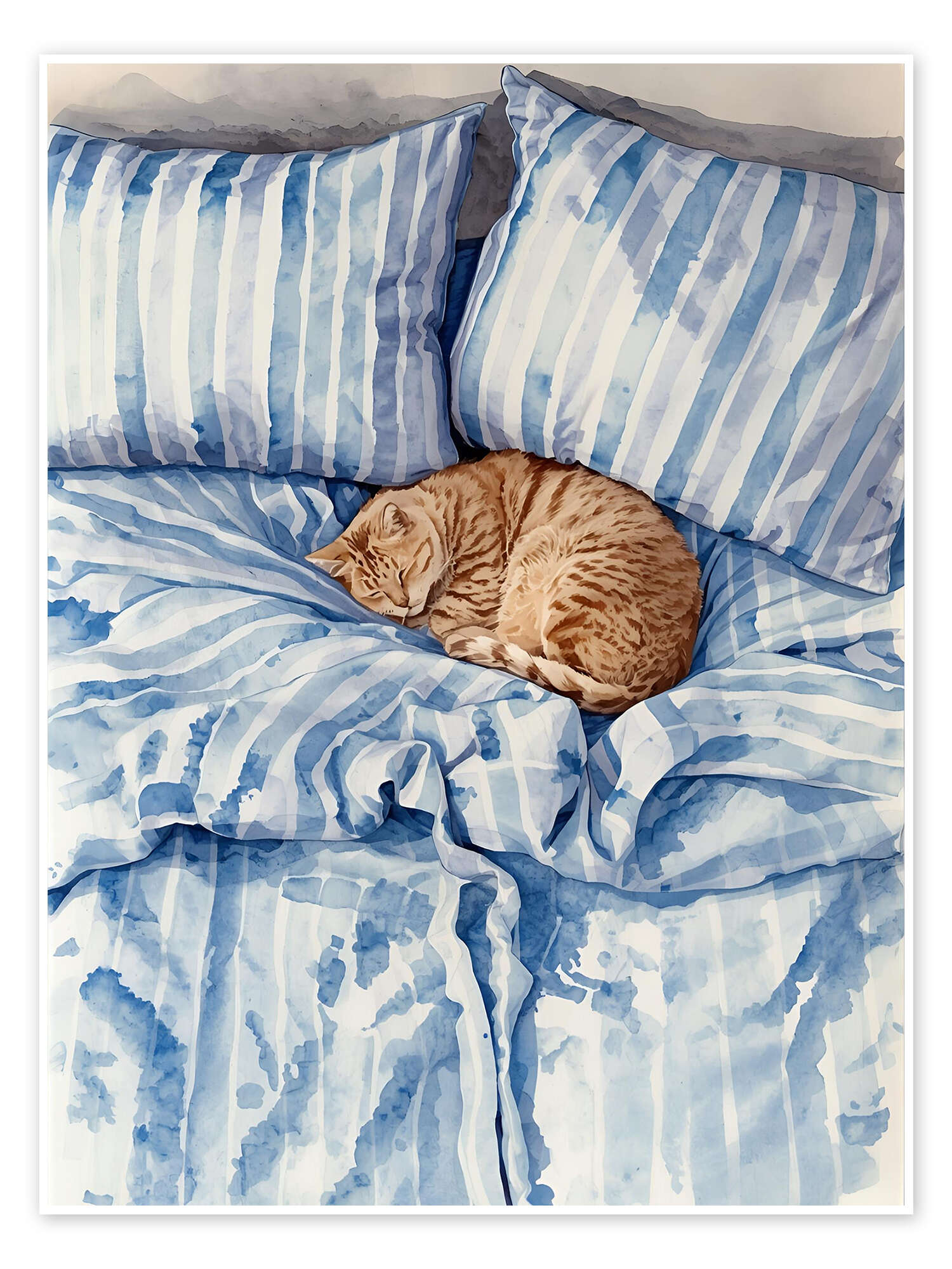 Poster Katze im gestreiften Bett