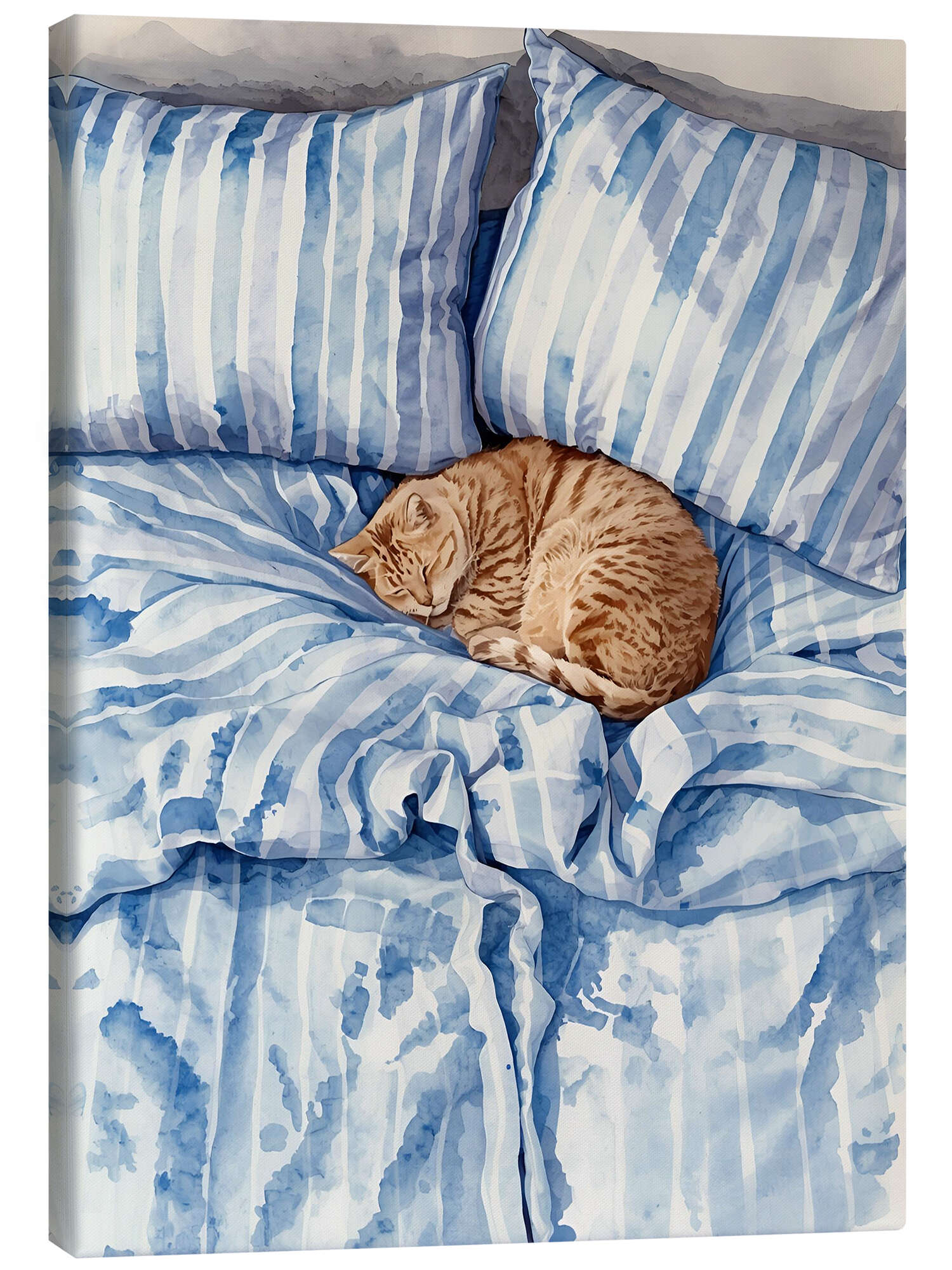 Leinwandbild Katze im gestreiften Bett