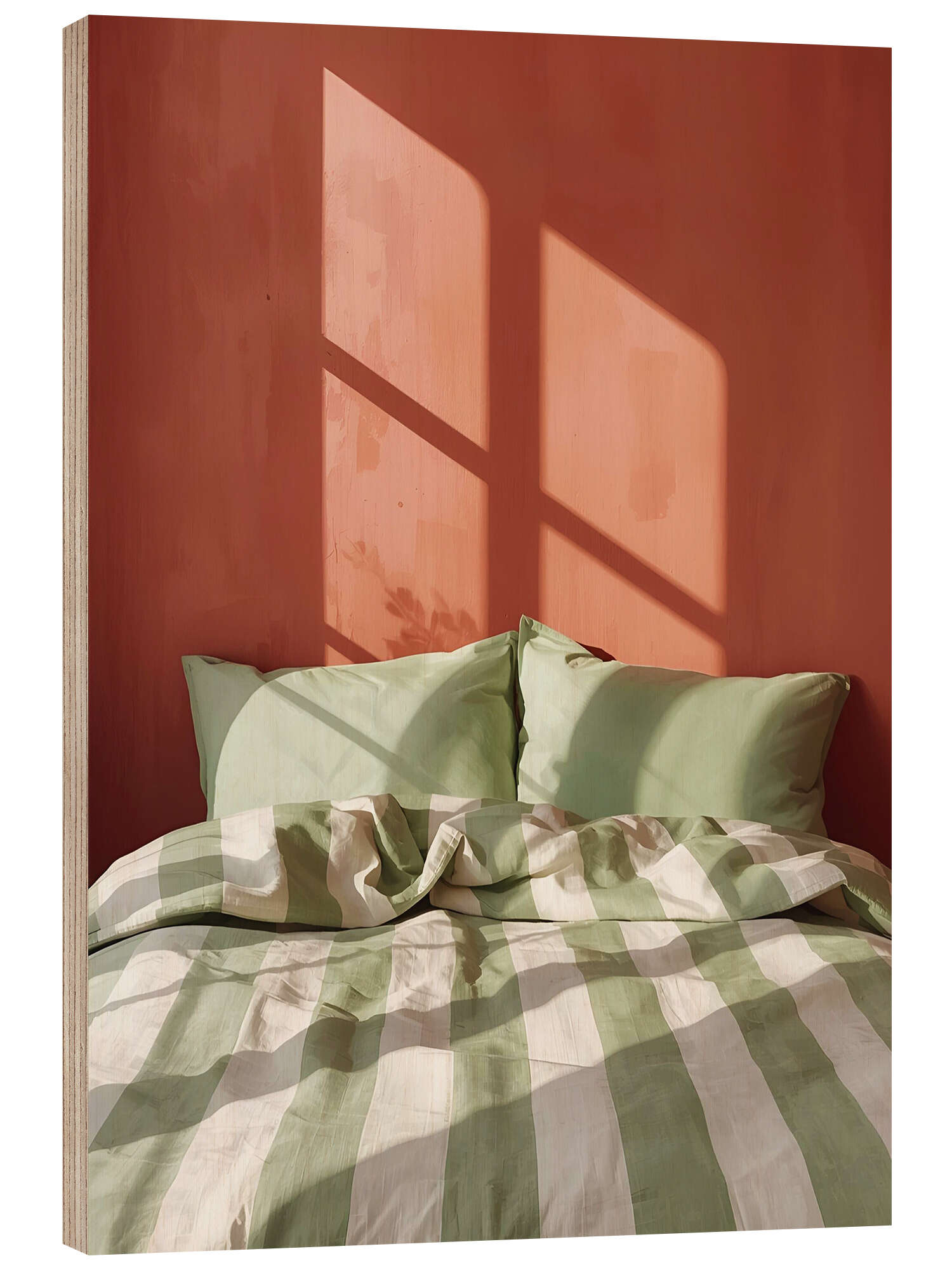 Posterlounge   Wandbilder   Schlafzimmer   Ohkimiko   Holzbild Bettgeschichten in Grün und Rot