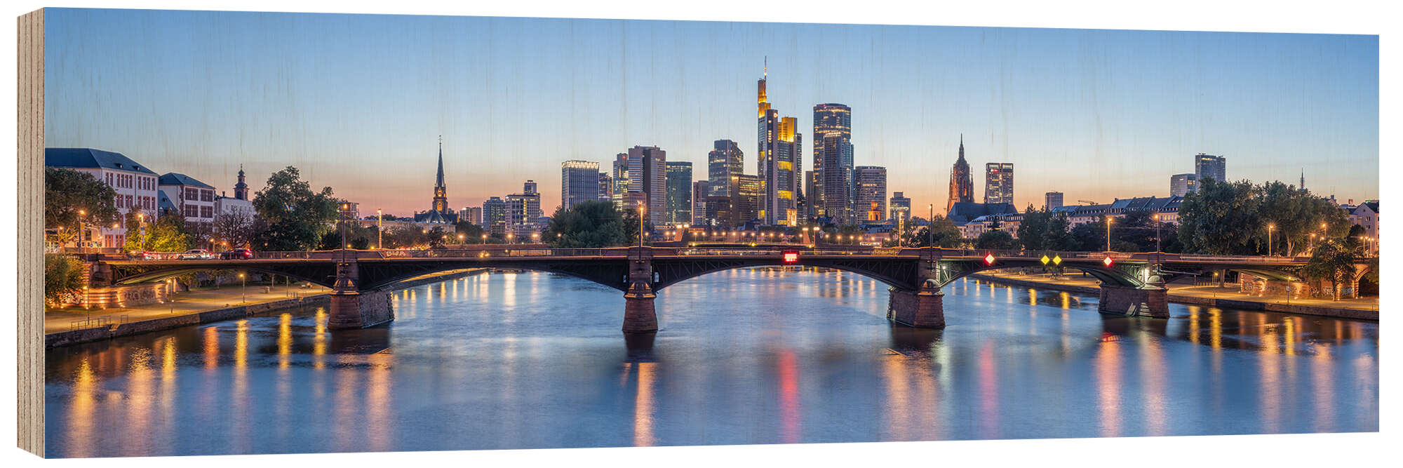 Holzbild Frankfurt am Main Skyline Panorama