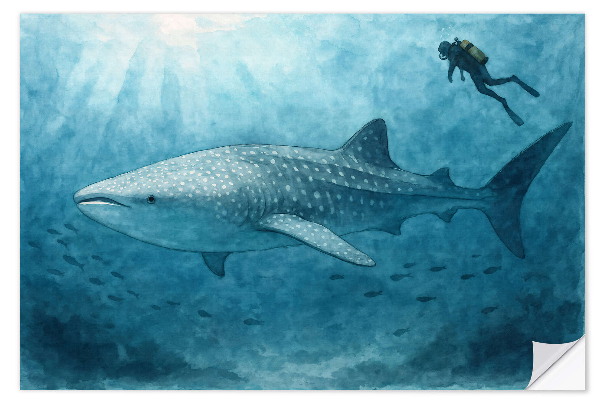 Wandsticker Taucher schwimmt mit Walhai