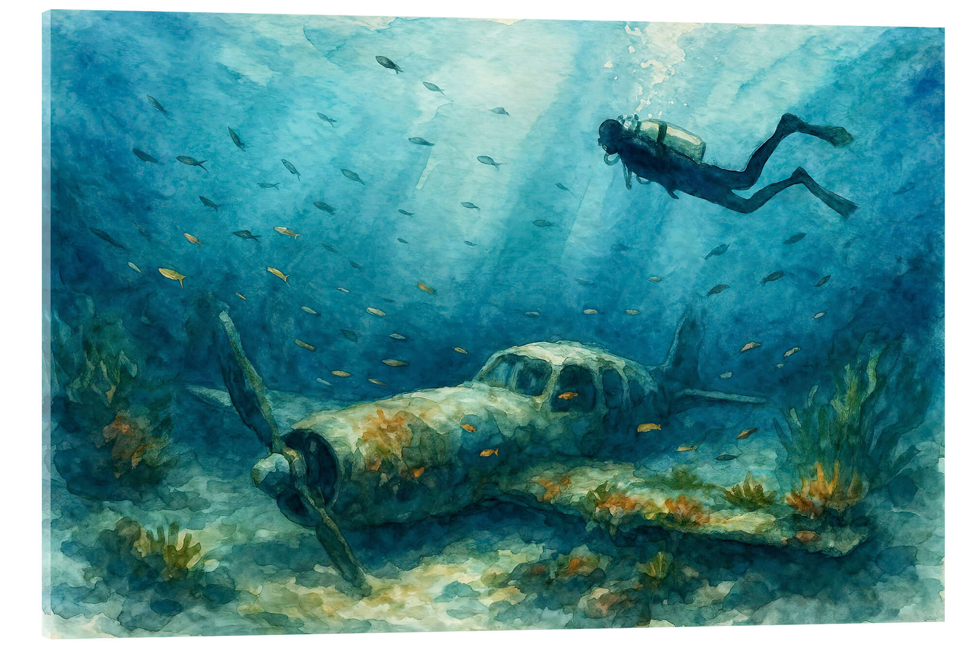 Posterlounge   Wandbilder   Natur   Unterwasser   Natalie Bruns   Acrylglasbild Taucher erkunden versunkenes Flugzeugwrack