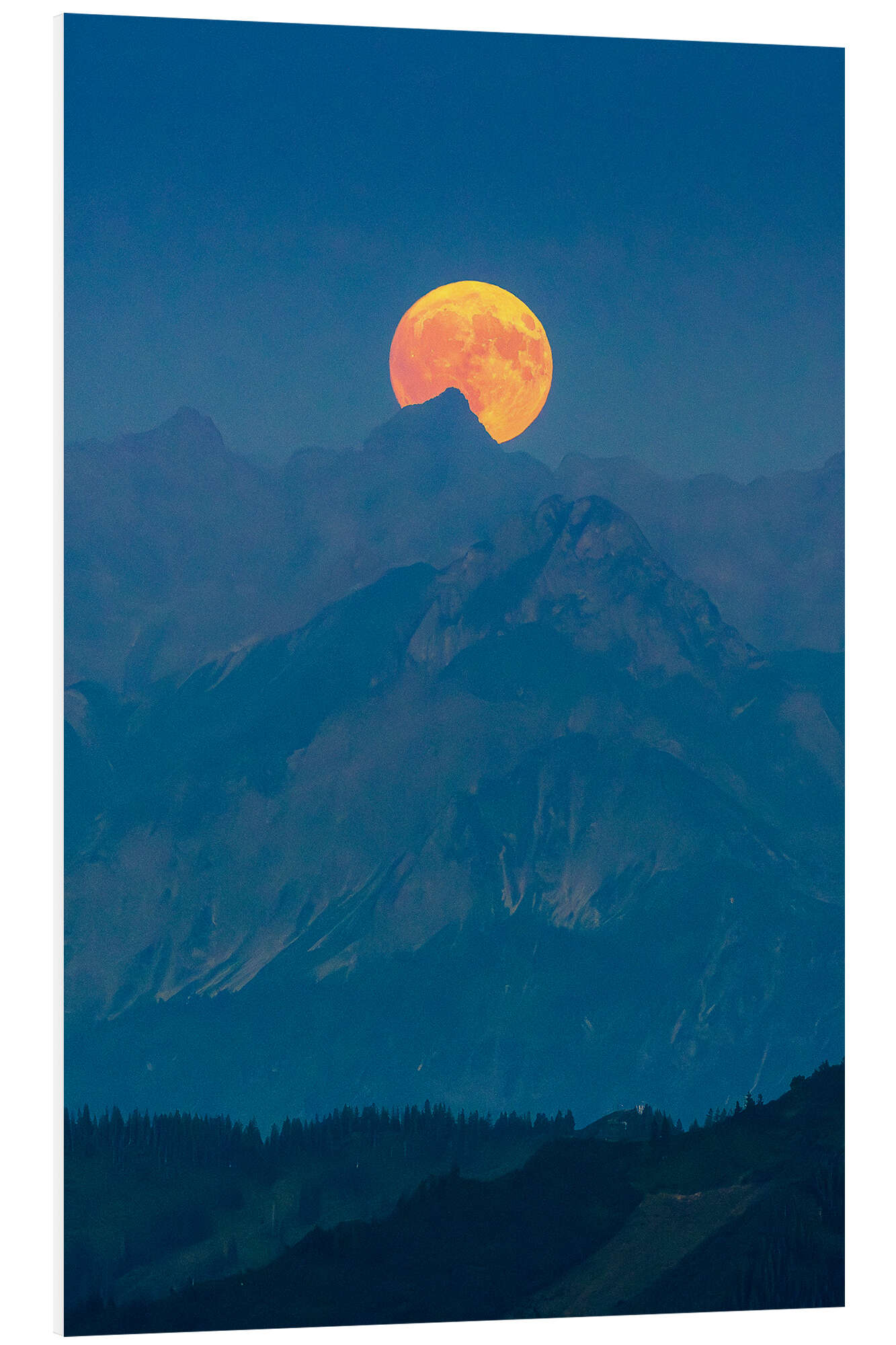 Hartschaumbild Vollmondaufgang in den Bergen