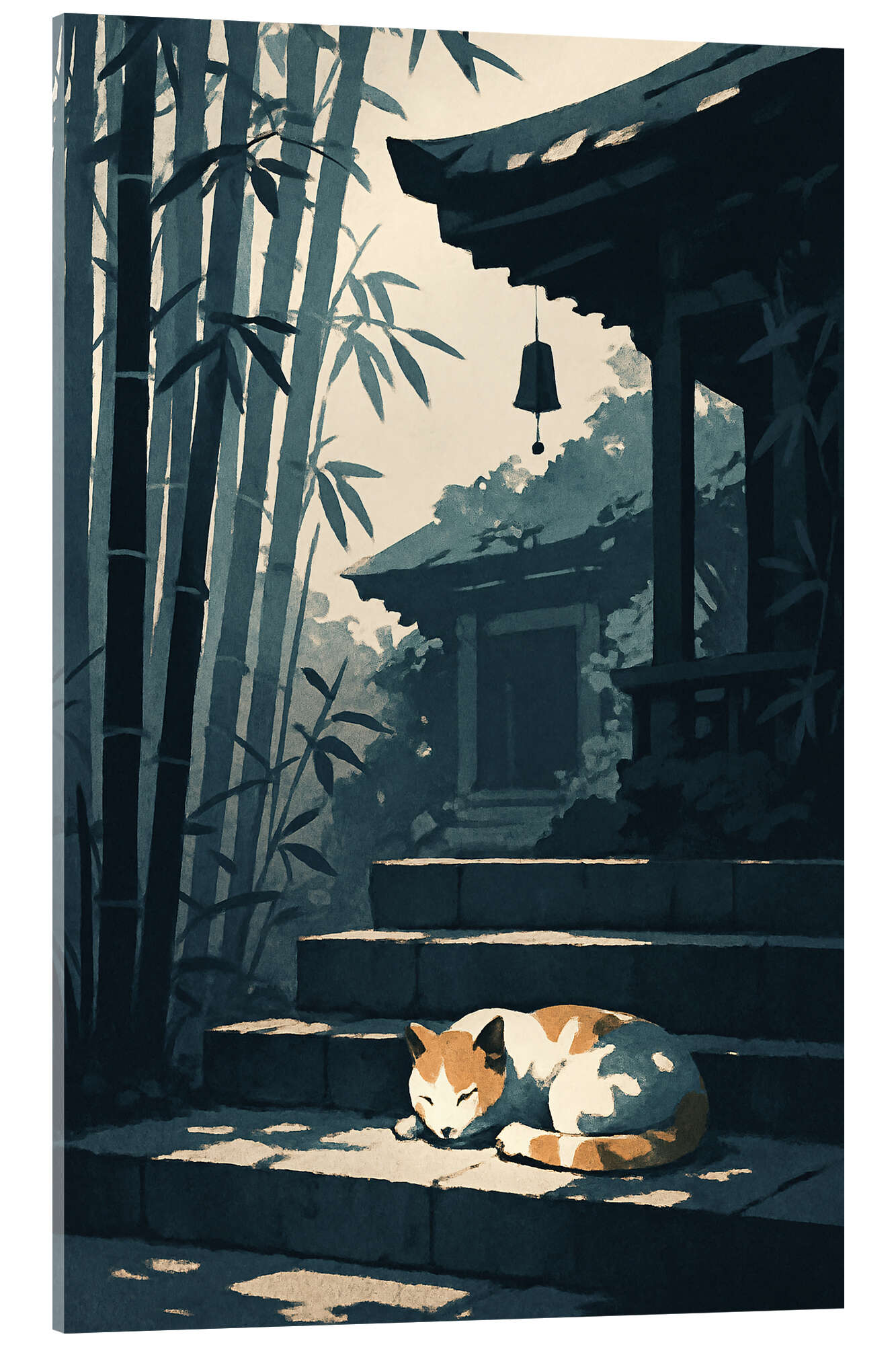 Acrylglasbild Schlafende Katze auf Tempelstufen