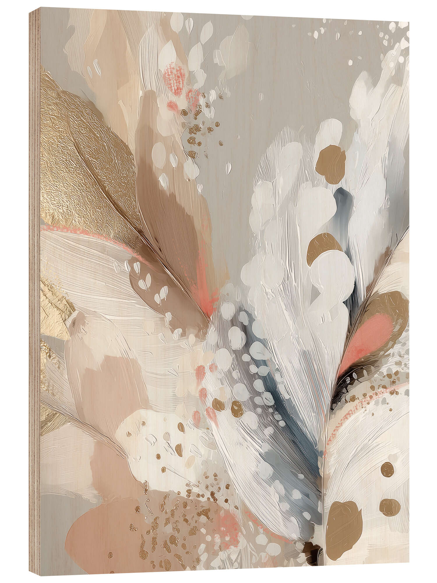 Holzbild Blütenblätter und Federn