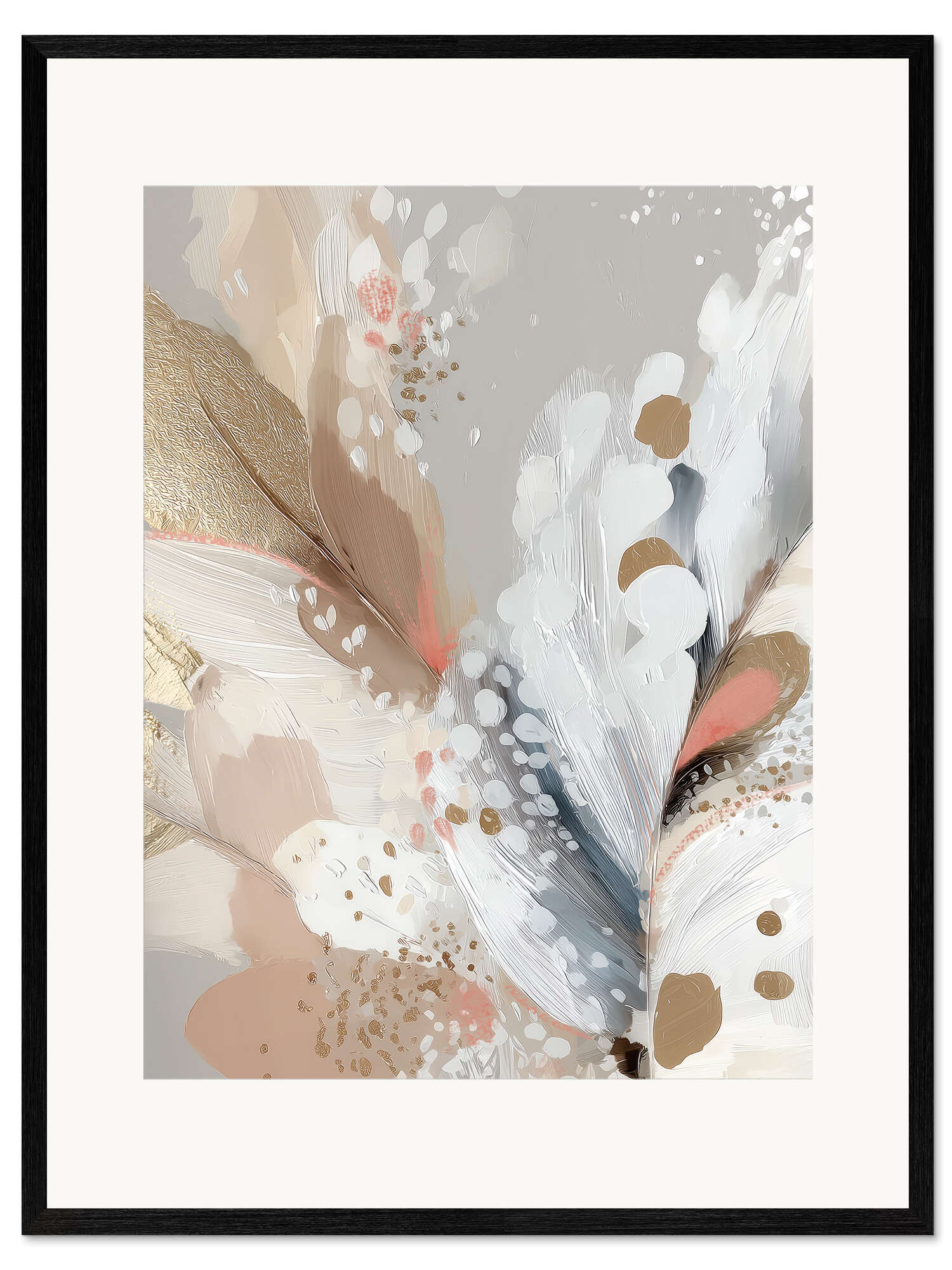 Gerahmter Kunstdruck Blütenblätter und Federn