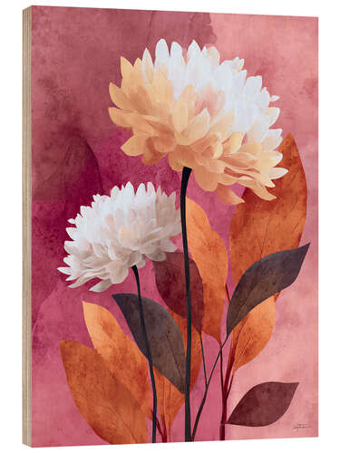 Holzbild Dahlien auf Rot