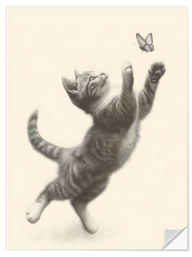 Wandsticker Kätzchen und Schmetterling Skizze