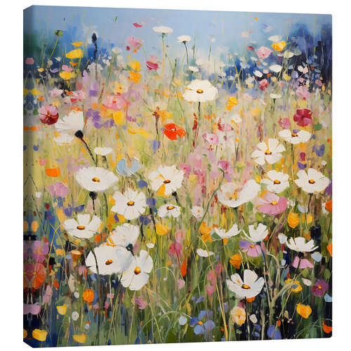 Leinwandbild Feld mit Gänseblümchen und Wildblumen