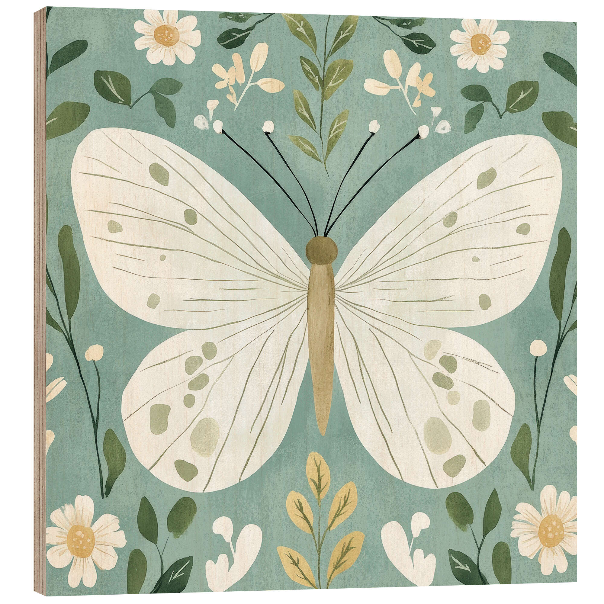 Holzbild Blaugrüner Schmetterling