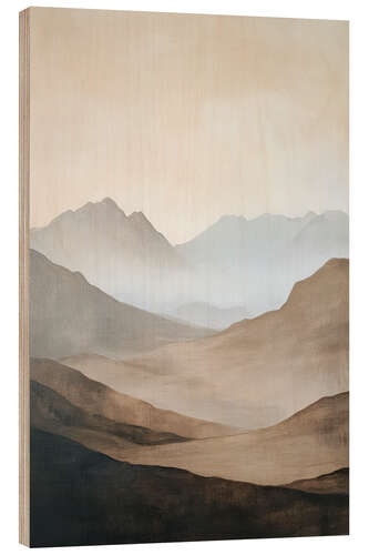 Holzbild Nebelige Berge