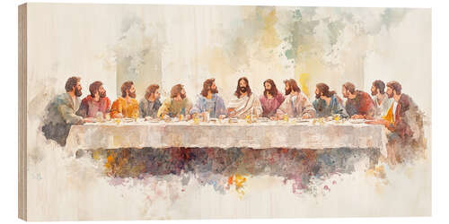 Posterlounge   Wandbilder   Menschen   PetalsPrintsDesign   Holzbild Das Abendmahl in Aquarell