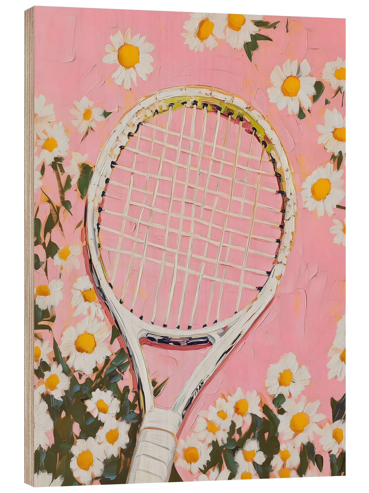 Holzbild Rosa Tennisschläger