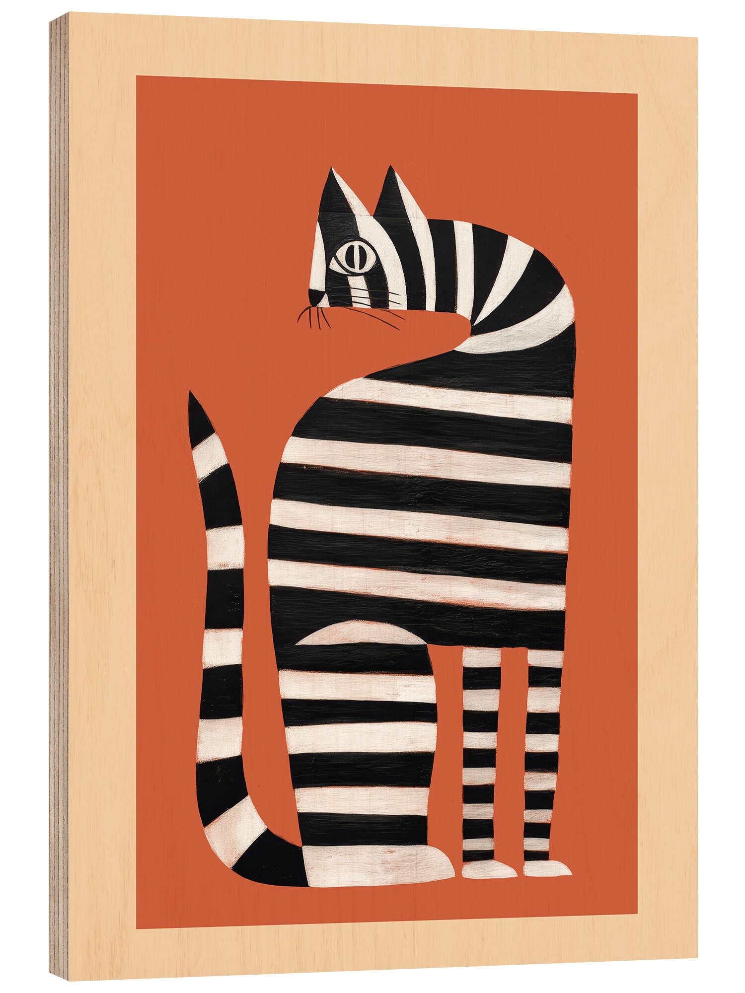 Holzbild Die gestreifte Katze II