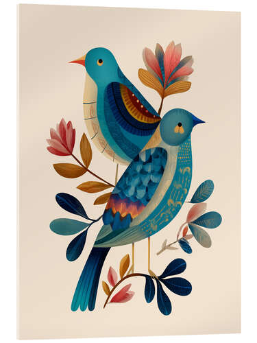 Acrylglasbild Singvögel zwischen Blüten