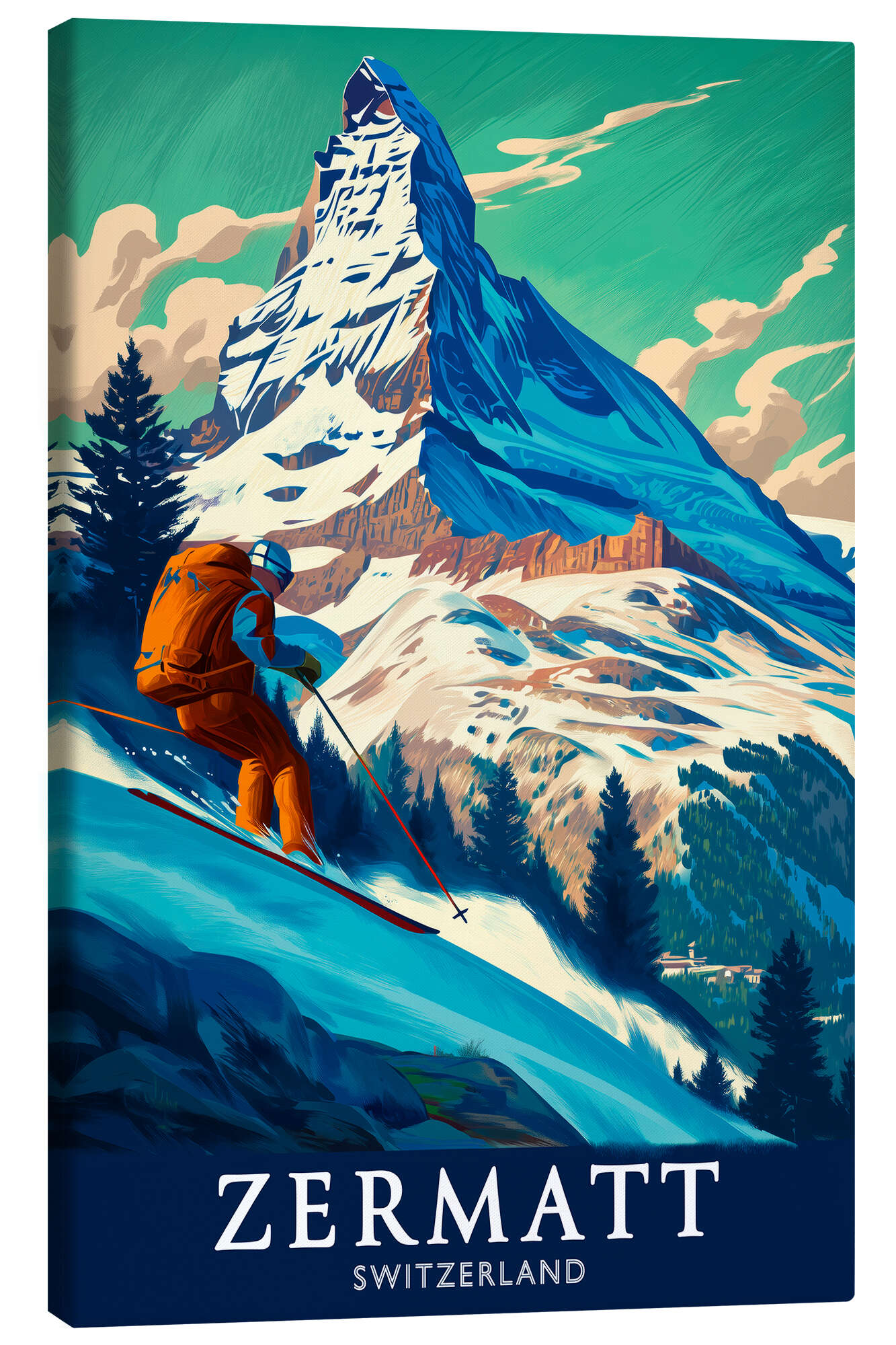 Posterlounge   Wandbilder   Blau   Thomas Klee   Leinwandbild Zermatt, Skifahrer am Matterhorn