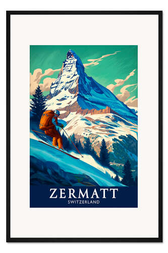 Posterlounge   Wandbilder   Blau   Thomas Klee   Gerahmter Kunstdruck Zermatt, Skifahrer am Matterhorn