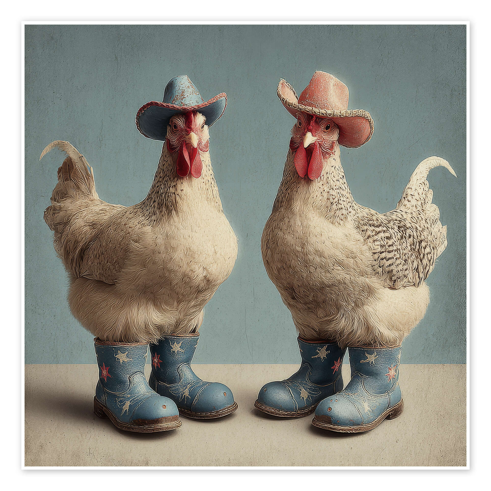 Posterlounge   Wandbilder   Türkis   DejaReve   Poster Hühner mit Stiefeln