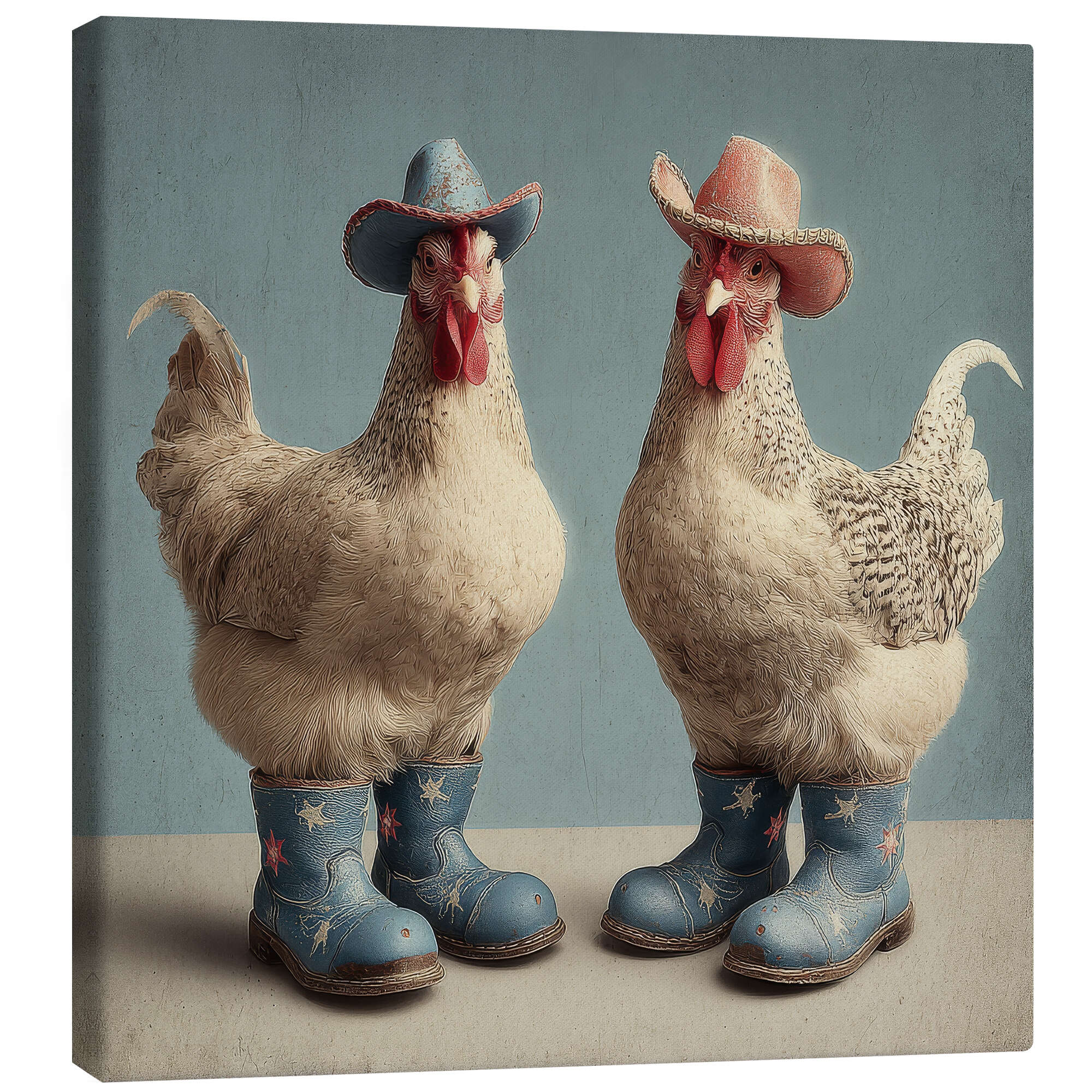 Leinwandbild Hühner mit Stiefeln