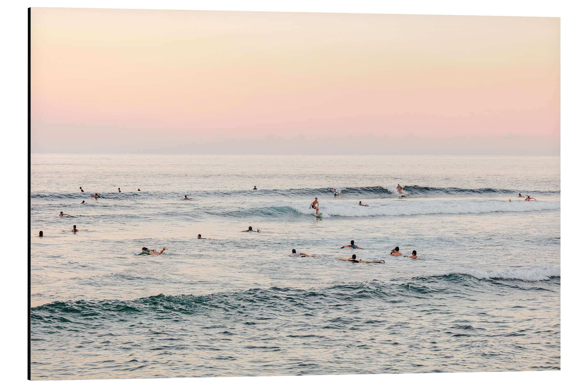Alubild Surfer im Meer bei Sonnenuntergang