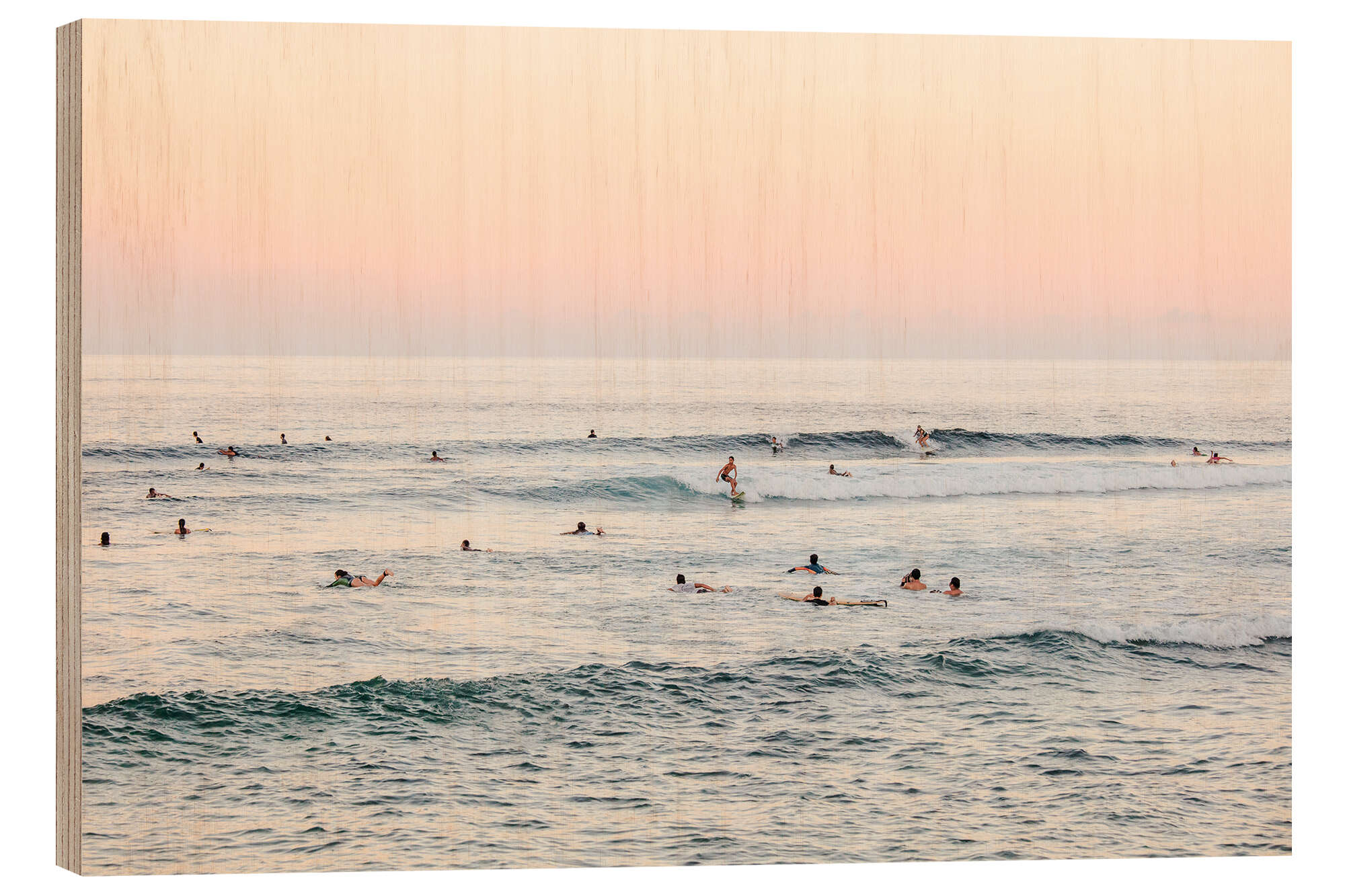 Posterlounge   Wandbilder   Fotografie   Matteo Colombo   Holzbild Surfer im Meer bei Sonnenuntergang
